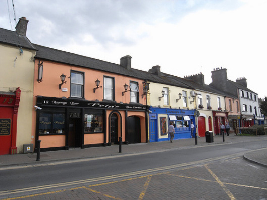 Terraced three-bay two-storey former house, built c. 1870, integral carriage arch to west and with shopfront inserted c. 2000. Pitched artificial slate roof, clay ridge tiles, rendered chimneystack to west. Replacement metal gutter, cast-iron hopper, plastic downpipe. Painted ruled-and-lined rendered walling. Square-headed window openings with painted stone sills, uPVC windows, original timber shutters to interior. Symmetrical timber shopfront with central square-headed door opening and double-leaf timber panelled door, bipartite fixed-pane timber display windows to either side on rendered wall, all flanked by flinted timber pilasters to timber fascia spanning entire ground floor. Round-headed door opening, with architrave surround on plinth blocks, replacement timber panelled door, original fanlight and limestone step. Elliptical-headed carriage arch with replacement vertically-sheeted timber doors.