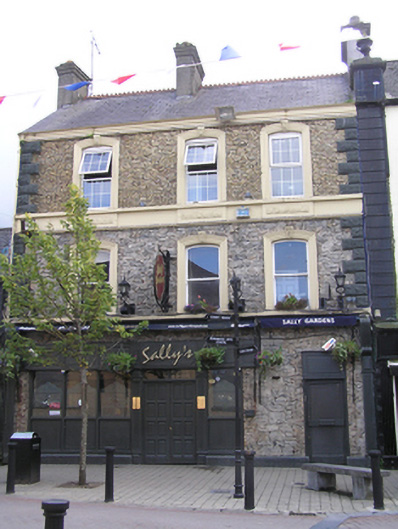 Terraced three-bay three-storey former house, built c.1840, shopfront inserted to ground floor, in use as public house. Pitched slate roof, terracotta ridge-comb tiles, and pair of tall rendered chimneystacks with rendered cornice and clay pots. Ogee cast-iron rainwater goods. Render removed from front elevation except vermiculated and rusticated rendered quoins, copied from former gaol, continuous sill course to both upper floors with rendered platband below second floor windows having vermiculated rendered panels below each window. Rubblestone walling to ground and first floors, brick surround to all openings, painted limestone ashlar plinth course, yellow brick walling to second floor laid in English garden bond. Segmental-headed window openings, architrave surrounds with vermiculated keystones, single-pane timber sash windows with ogee horns to first floor, uPVC to second floor. Glazed timber shopfront inserted c. 2000 with timber fascia, further square-headed door opening to west with replacement glazed timber door and original limestone step opening onto street. Ground floor flanked by timber pilasters and scrolled brackets c. 2000.