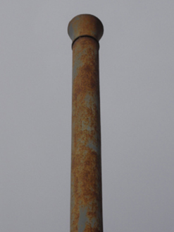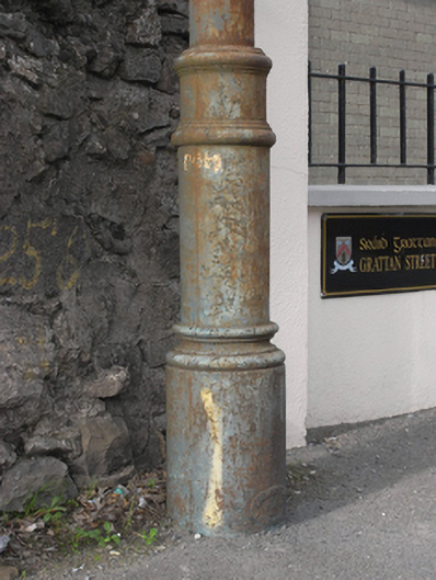 Free-standing cast-iron vent pipe, erected c. 1900. Moulded collar to a plinth base, with a double moulding below a plain shaft and a roll moulded collar to an open wider head. Foundry name: Hammond Lane, Dublin, to base.