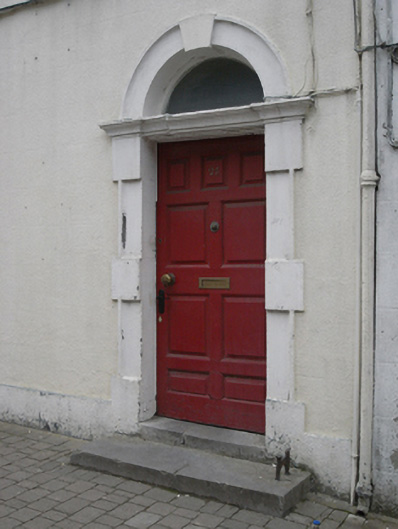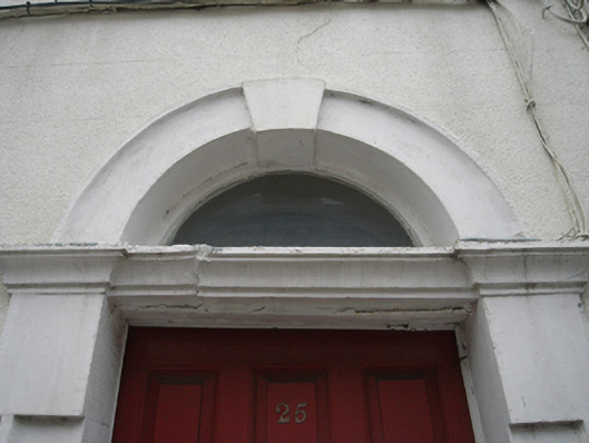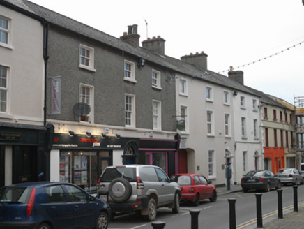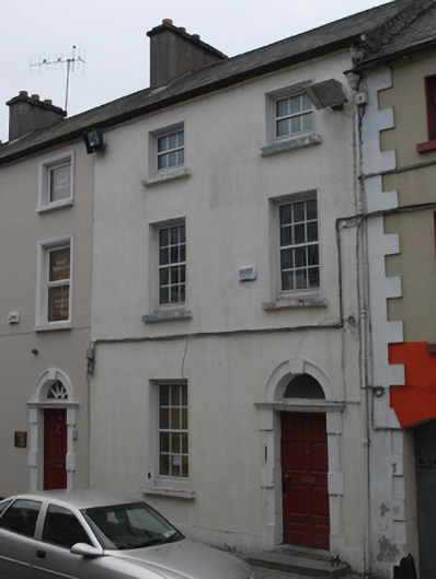 Terraced two-bay three-storey late-Georgian townhouse, built c.1820, in use as offices. Pitched artificial slate roof, clay ridge tiles, large replacement metal gutter, cast-iron hopper and downpipe. Painted rendered walling, projecting painted plinth course. Square-headed window openings, patent rendered reveals and limestone sills, uPVC windows. Round-headed door opening with block-and-start limestone ashlar surround and keystone, plain glazed fanlight, limestone lintel cornice and raised and fielded timber panelled door opening onto two limestone steps, with wrought-iron bootscraper.