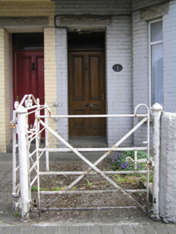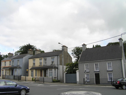 Semi-detached two-bay two-storey house, built c. 1910, with a ground floor bay window. Pitched artificial slate roof, terracotta ridge tiles, rendered chimneystack rising from west gable with clay pots and plastic rainwater goods on a stepped brick eaves course. Painted brick walling laid in English garden wall bond with a stepped brick string course below first floor sill level, ruled-and-lined rendered walling to west gable and rear. Canted bay window to ground floor with an artificial slate roof over entrance and window spanning across to adjoining house. Square-headed window and door openings throughout with rock-faced granite lintels and granite sills, uPVC windows to both floors. Recessed doorcase with original timber panelled door and overlight, opening onto granite step. Concrete path with wrought-iron railing and gate. Small front garden enclosed by rendered wall.