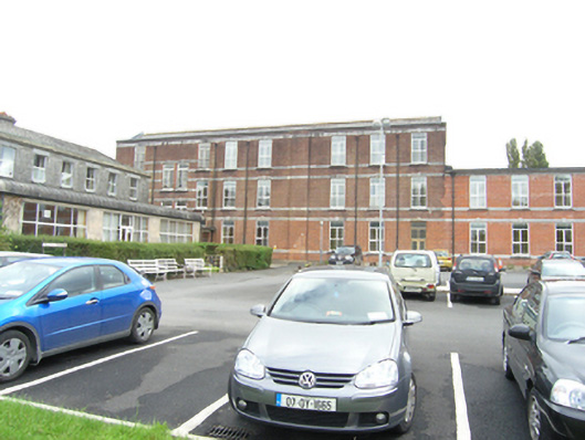 Attached multiple-bay three-storey extension to St. Fintan's hospital, built 1898 on a L-plan layout with a nearly symmetrical extension to north (12508086), four bays to east elevation, projecting east wing of nine bays and three bays north of this with a later three-storey diagonal projecting toilet block in the re-entrant angle to north-east, stairs in second and third bay at north end of western elevation have different level fenestration, paired advanced gabled bays to the projecting east wing in the re-entrant angle and in the sixth and seventh bays facing south, gable end to east wing with three bays and a two bay wing attached to the north, single storey connecting passage to older block. Pitched slate roof, brick blocking course with limestone coping, brick stack to projecting east wing, cast-iron rainwater goods. Red brick with cut limestone detailing, limestone plat bands continuous with sill level and window head of each storey, six strips in all, moulded flat arches to heads of windows each with a keystone and sloping sills, wide un-fenestrated area with a broad pilaster on western elevation between bays six and seven and southern elevation of east projecting wing between bays eight and nine that marks the attached wing on the opposite elevation. Original windows to north end of western elevation and top floor of gable of eastern wing, pairs of one-over-one sliding sash windows with mullion between and square-headed light above a transom, original multi-paned square-headed light to gable elevation, replacement uPVC windows to other windows.