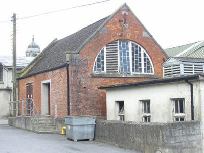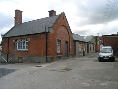 Detached single-storey boiler house complex, built c. 1895, consisting of two gable ended blocks flanking spine block incorporating flat-roofed extension to east side and a large boiler shed between the spine block and southern block, single-storey flanking extension to east elevation of southern block. Pitched slate roofs, pressed metal roof to boiler block, decorative skew corbels and kneelers to red brick gables, red brick stack on east gable of northernmost block, square tall chimney to gable of boiler block, cast-iron rainwater goods. Red brick walls on tall rendered plinth course, rendered walls to spine block, square-headed window openings with red brick block-and-start surrounds, large red brick semi-circular window openings to gables of the southern block with the design reflected in the recessed panel of the northern block gable, round-headed door opening, square-headed door opening with raised rendered surrounds. Variety of window types, six-over-nine and paired one-over-one sliding sashes, three-over-six, two, four and five-light casements and semi-circular windows divided in four by timber mullions.
