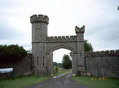 Castellated gateway, dated 1842, designed by William Deane Butler (1793/4-1857). Known as "Tower Lodge".