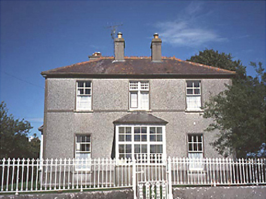 Detached three-bay two-storey parochial house, c. 1890, with projecting glazed porch and canted bay window.