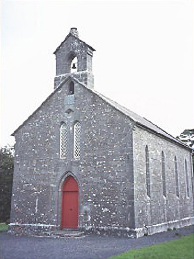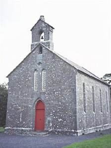 Detached four-bay Church of Ireland church, dated 1845, with bellcote to gable and chancel.