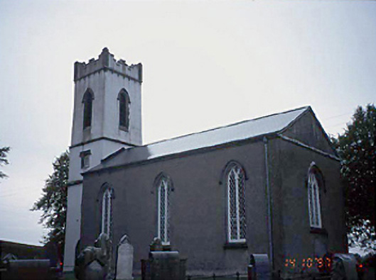 Detached three-bay Georgian Gothic style Church of Ireland church, c. 1820, with tower.