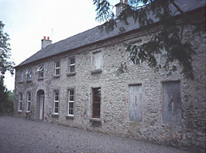 Detached five-bay two-storey late-Georgian house, c. 1825, with three-bay range to right and return to rear. Group of detached single- and two-storey stable buildings to site. Now in commercial use.