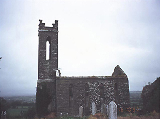 Detached four-bay double-height single-cell Board of First Fruits Church of Ireland church, built 1831, with two-stage tower. Now in ruins. Ruins of earlier church to south.