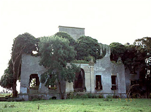 Remains of detached five-bay two-storey over basement Georgian house, c. 1790, with projecting porch. Now in ruins.