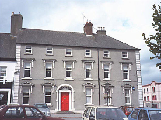 Terraced six-bay three-storey over basement house, c. 1835, on a corner site. Renovated, c. 1930, with façade enrichments added. Renovated, c. 1985, with ground floor partly converted to use as bank.