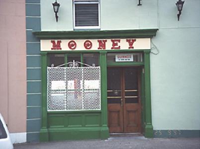 Terraced three-bay two-storey house, c. 1850, with pubfront to ground floor.