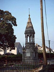 Freestanding granite Gothic Revival memorial, dated 1878, comprising octagonal lantern on a square pedestal having pinnacles and spirelet over. Portland stone west plaque reads: "In memory of/Thomas/Third Viscount de Vesci/this fountain is erected/by a grateful tenantry/A.D. 1878" J. Rawson Carroll was architect. Crest to east plaque.