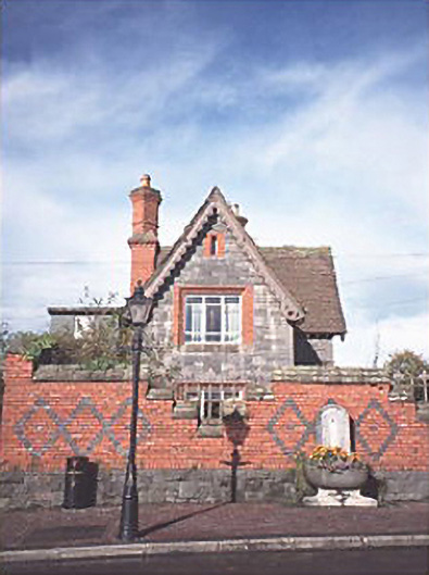 Detached two-storey Tudor Gothic style gate lodge, c. 1885, with canted bay window. Extended comprising two-storey range.