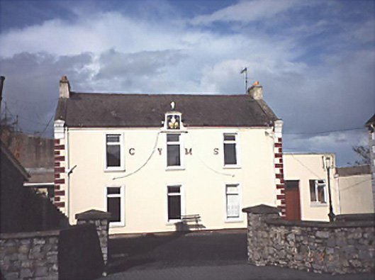 Detached three-bay two-storey former school, c. 1910. Renovated, c. 1975, with single-storey entrance bay added to right to accommodate use as hall.