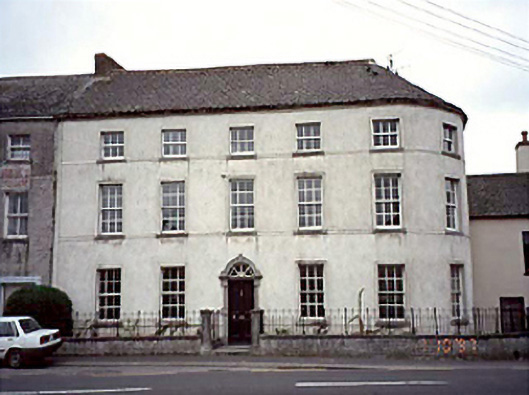Semi-detached six-bay three-storey late-Georgian house, c. 1810, with curved end bay to right. Renovated, c. 1985.
