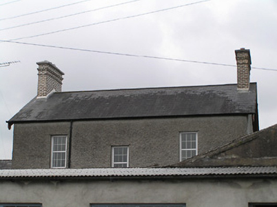 Detached three-bay two-storey former Royal Irish Constabulary barracks, built in 1884, having a single-bay entrance porch with pitched roof to the centre of the front elevation (west). Now in use as a house. Three-bay single-storey annexe attached to the south gable (c. 1910) having a pitched artificial slate roof. Two-bay single-storey extension to north gable having pitched artificial slate roof. Extension to north now in use as a commercial premises. Pitched artificial slate roof to main building with timber bargeboards and with a moulded brick chimneystacks to either gable end. Remain sections of cast-iron rainwater goods. Roughcast rendered walls; lined-and-ruled rendered finish to porch. Square-headed window openings with replacement uPVC windows and painted sills. Square-headed door opening to porch having a timber panelled door with an overlight above having vertical glazing bars. Square-headed openings to annexe with three-over-six pane timber sliding sash windows having painted sills and a central half-glazed timber panelled door. Road-fronted to the north of Longford Town with multiple recent extensions to the rear (east).