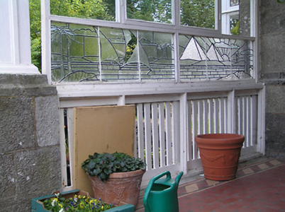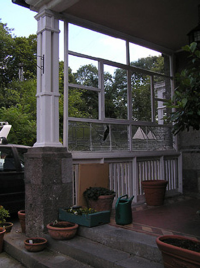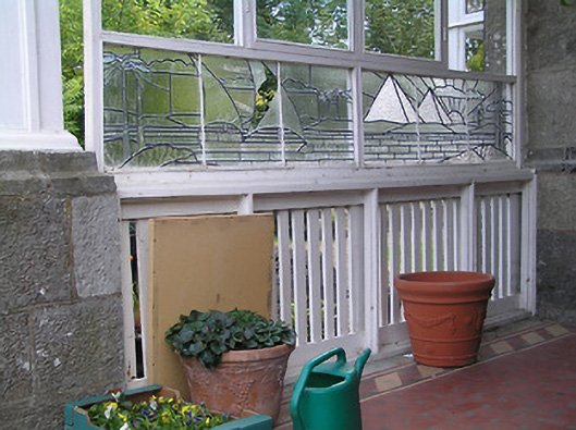 An interesting and eclectic late nineteenth-century house with various Arts and Crafts influences, which retains its early form, character and early fabric. The Arts and Crafts influence on this house is evident: the mixture of red brick and local stone, the irregular massing and plan, the multi-paned overlights, the decorative terracotta finials and the attention to detail are all part of the interest and illustrate the skills of craftsmanship in the late-nineteenth century. The depiction of the River Nile on the glazed screen is an unusual feature in provincial Ireland. It may be due to the taste for orientalism in the nineteenth century, and is a rare example of secular glass art in Ireland. This fine structure was reputedly built by an English gentleman who worked in Foreign Office and, perhaps, the depiction of the Egyptian imagery illustrates/represents a previous posting. This building is an integral element of the built heritage of Longford and forms part of an interesting collection of substantial dwellings, set in mature grounds, to the north end of Longford Town.
