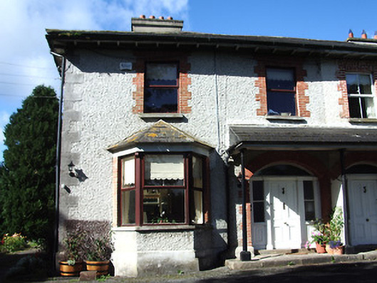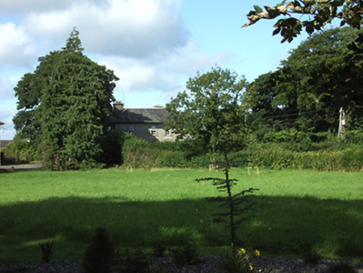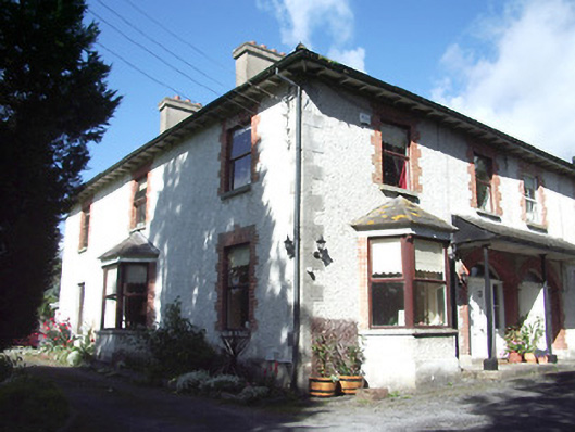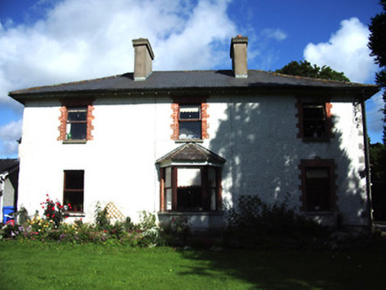Semi-detached two-bay two-storey house, built 1884, with bay windows to front (east) and side elevation (south) and with shared projecting open porch to entrance front (east). One of a pair with its neighbour adjacent to the north (13001057). Late-twentieth century single-storey extension to rear. Hipped slate roofs with overhanging eaves, rendered chimneystacks and cast-iron rainwater goods. Painted roughcast rendered walls with raised tooled limestone quoins to the corners. Square-headed window openings with red brick block-and-start surrounds, tooled stone sills and replacement windows. Lean-to slate roof to porch supported on cast-iron columns. Segmental-headed entrance opening with red brick block-and-start surround, timber panelled door, timber pilasters, glazed and timber panelled side lights and overlight. Limestone threshold and stone flagged pavement to entrance. Gateway and garden shared with neighbour to the north (13001057). Painted rendered capped piers to driveway, set in random rubble stone boundary wall with wrought-iron double leaf gates. Situated at the end of a long driveway with landscaped gardens to the front and side. Located to the north end of Longford Town centre.