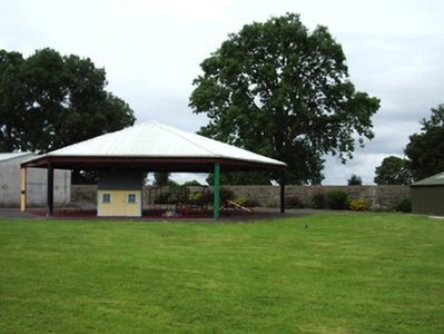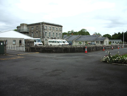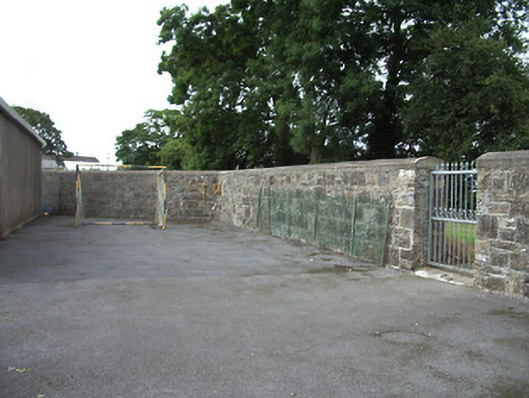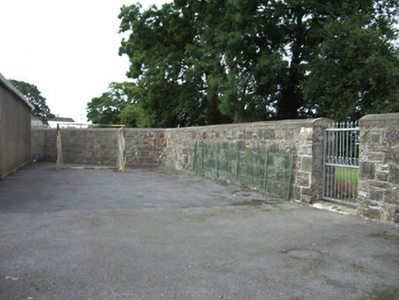 Freestanding boundary wall to former prison complex, erected c. 1825. Snecked, random rubble and coursed limestone wall with render coping to perimeter of site. Later inserted features such as gates. Some reworking of sections and coping. Surrounded by landscaped gardens. Surrounds former early nineteenth-century former jail reception/governor’s house (13001036). Gate lodge located to the east (13001034). Located to the north of Longford Town centre.