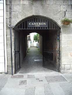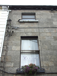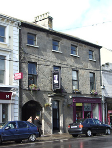 Attached four-bay three-storey former bank, built 1872, with integral segmental-headed carriage arch to the south end of the main façade (east). Now in use as offices and shop with modern shopfront inserted to the north end of the main façade (east). Pitched artificial slate roof with timber bracketed eaves and a coursed stone chimneystack to the centre having terracotta chimney pots over. Coursed granite façade with rendered walls to north gable. Square-headed window openings with painted stone sills and replacement windows. Segmental-headed doorway with carved granite canopy on scrolled decorative brackets, moulded surround, plinth blocks and stone threshold. Timber panelled door and plain overlight. Wrought-iron gates and cobbled paving to carriage arch. Late-twentieth century timber shopfront to ground floor. Square-headed openings with fixed timber frame display windows and glazed timber door. Set directly on the street.