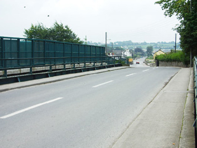 Freestanding double-span railway bridge, built c. 1855, carrying road over railway line. Central coursed limestone pier and coursed limestone flanking walls to either end (north and south). Cut stone coping to flanking walls and rock-faced limestone quoins to central pier. Cast-iron bridge number plaque to north elevation of central pier. Riveted and welded painted steel parapets c. 1940. Concrete walkway, piers and steel railings c. 1970. Situated spanning the railway tracks of the Sligo to Dublin line and to the south of Longford Town centre. Longford Town Railway Station (13004044) located to the east.