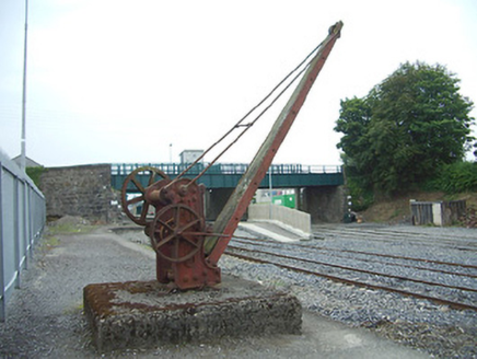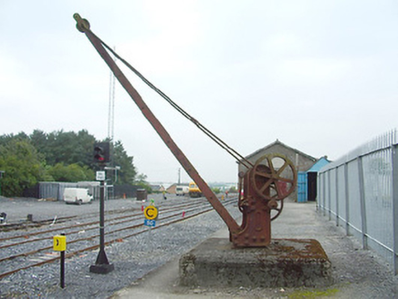 This crane is of industrial archaeological significance as a reminder of the great age of the railways during the second half of the nineteenth century. Retaining its original mechanisms, this crane, which was intended to be operated by hand and was designed to swivel, is of technical and engineering importance. It was originally erected by the Midland and Great Western Railway Company to serve the Dublin to Sligo railway line, which reached Longford in 1855 and was completed in 1862. It forms part of an extensive group of structures associated with Longford Town Railway Station (13004044) and forms a pair with the associated goods shed (13004150) to the west. It remains an integral component of the built heritage of Longford Town, and of the social and economic history of County Longford.