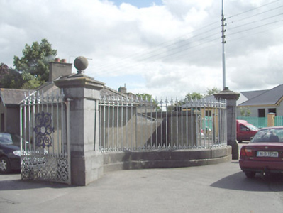 This elegantly appointed sweeping gateway is an integral component of the St. Mel’s College (13003002) complex. Despite some damage, it retains its early form and character. Exhibiting fine stonemasonry, the aesthetic design of the composition is further enlivened by the good quality cast and wrought-iron gates and railings, particularly the elaborate college/seminary emblem/crest and the highly decorative lower panels to the gates. This gateway forms an interesting pair of related structures with the attendant gate lodge to the east (13002328), and it adds aesthetic incident to the streetscape to the southeast of Longford Town centre. It was possibly erected to designs by John Bourke (died 1871), the architect responsible for the designs of the main college building.
