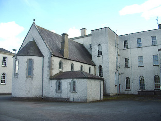 The round-headed window openings lend this chapel a subdued classical feel that compliments the architectural style of the main St. Mel’s College building (13003002). The plain exterior facades are enlivened by the good quality tooled limestone surrounds to the openings, the apsidal sanctuary and by the stained glass windows. This chapel was probably built to designs by John Bourke (d. 1871), the architect responsible for St. Mel’s College, and is likely to have been constructed at the same time. It forms part of an interesting group of related structures within the St. Mel’s College complex and it represents an integral element of the built heritage of Longford Town.