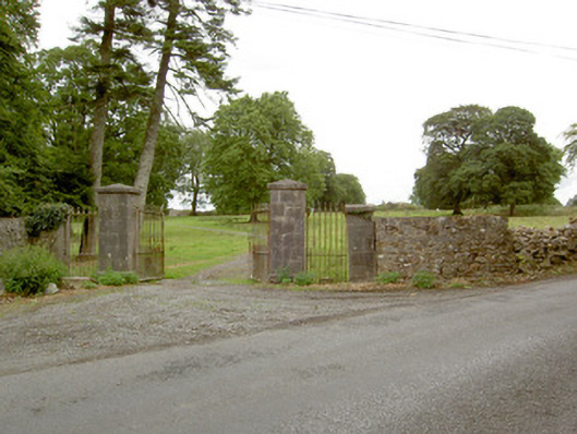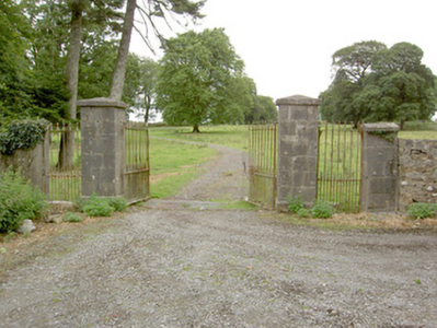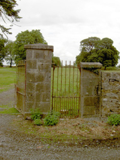 A simple but well-crafted gateway formerly served St. Anne’s Church of Ireland rectory (13303014), now ruinous. Although slightly damaged and out of use, it retains its early character and form. Good quality craftsmanship is apparent in the dressed limestone gate piers and the simple cast and wrought-iron gates. It forms an integral part of a group of structures along with the rectory (13303014) and the associated outbuildings (13303015) and is an interesting feature in the landscape to the northeast of Newtown-Forbes. The rubble stone boundary walls, although damaged, complete the setting and add to this composition. A gate lodge once stood to the east side of these gates, now no longer extant.