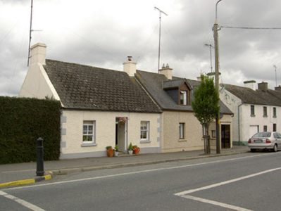 End-of-terrace three-bay single-storey vernacular house, built c. 1850. Steeply pitched artificial slate roof with rendered chimneystacks to either end (north and south) and a raised rendered verge to the south gable. Painted roughcast rendered walls with smooth rendered quoins and plinth. Square-headed window openings with two-over-two pane timber sliding sash windows having painted sills. Central square-headed door opening with timber battened door having plain overlight above. Fronts directly onto street to the west side of the main street running through Newtown-Forbes.