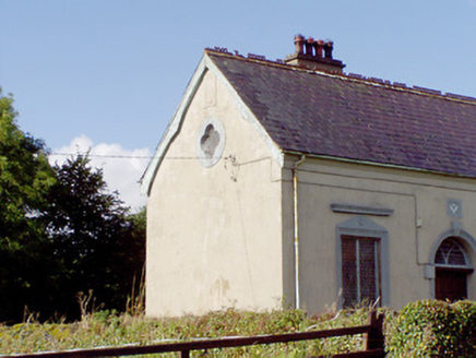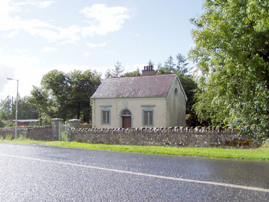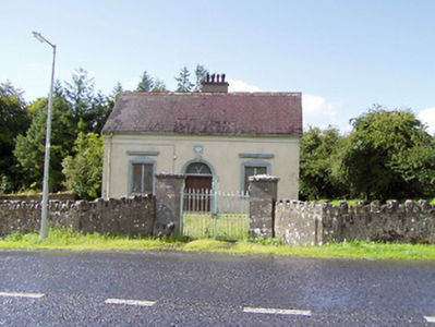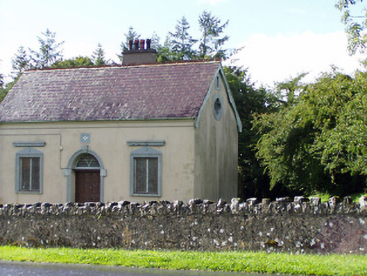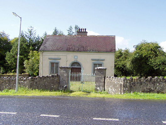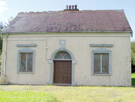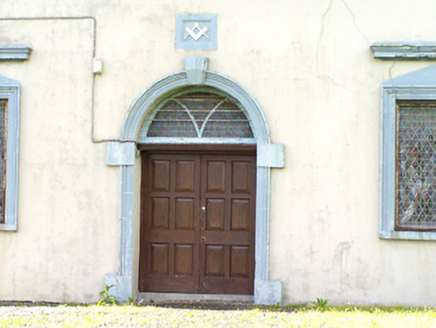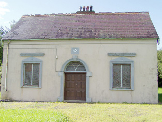 Detached three-bay single-storey (with attic level) former Masonic Lodge, built c. 1870, having return to rear (north). Pitched natural slate roof (Bangor blue) with cast-iron ridge crestings having trefoil motifs, timber bargeboards and a rendered chimneystack (aligned parallel to roof ridge) having terracotta pots. Painted lined-and-ruled rendered walls with moulded rendered eaves course and plaque. Render plaque over main entrance with Masonic square and compass motifs. Square-headed window openings with stained glass quarry glazed windows, architraved surrounds with pointed heads having heraldic motifs and with rendered lintels/entablatures over. Quatrefoil openings with rendered surrounds to gable ends at attic level. Central round-headed entrance to main elevation (south) with timber panelled double doors, chamfered rendered architraved surround with blocks and keystone, and a fanlight with stained glass and timber tracery. Set back from road in own grounds to the west of Granard. Rubble limestone (partially rendered) boundary walls to road frontage (south). Pair of dressed limestone gate piers to entrance with chamfered plinths, cut stone capstones and with double leaf cast-iron gates with Masonic square and compass motifs.