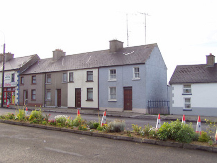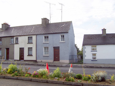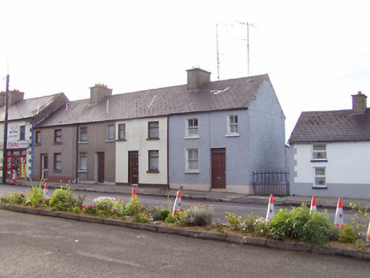 End-of-terrace two-bay two-storey house, built c. 1850, having lean-to extension to the rear (south). One of a terrace of four along with the buildings adjacent to the east (not in survey). Pitched natural slate roof with (shared) rendered chimneystack to the east end. Roughcast rendered walls over rendered plinth course. Square-headed window openings having two-over-two timber sliding sash windows, rendered reveals and painted cut limestone sills. Square-headed door opening to the east end of the main façade (north) with replacement timber panelled door and overlight. Road-fronted to the northeast end of Granard town centre. Gateway/lane to the southwest end having wrought-iron flat bar gate.