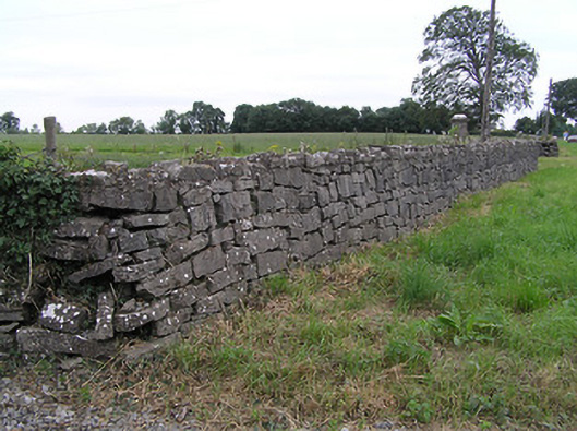 These walls and the fine gateway add interest to the roadscape. The contrast between the roughly dressed finish of the walls and the carefully cut and carved gate piers is attractive. While the walls are typical of modest farm holdings in their lack of height and their modest functional appearance, the entrance piers show skilled design and execution, and are more typical of a gentleman farmer's residence or country house. Although only very roughly dressed, the lack of visible mortar joints gives the walls a neat finish. This gateway forms the rear entrance to a two-storey house (13307023) to the north (Ordnance Survey third edition six-inch map 1914). However, the gateway predates the present house and may have been associated with an earlier house here or, perhaps, moved to its present site from another location (on Ordnance Survey first edition six-inch map 1837).