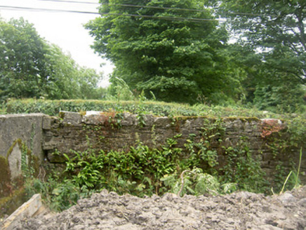Single-arch road bridge over stream/river, built c. 1780, with squared rubble limestone walls/spandrels and parapets and having a round arch with dressed limestone voussoirs. Located to the southwest of Edgeworthstown.