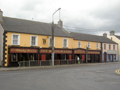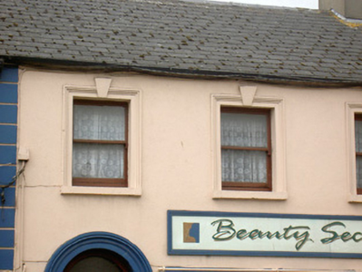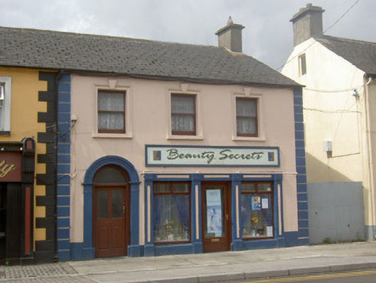 End-of-terrace three-bay two-storey house and shop, built c. 1850 and altered c. 1900, having shopfront to the north end of principal elevation (east). Pitched artificial slate roof with cast-iron rainwater goods and a rendered chimneystack to the north gable end. Rendered walls over plinth course with render block quoins to the corners at either end. Square-headed window openings at first floor level having one-over-one pane timber sliding sash windows, decorative render surrounds with keystone detail and stone sills. Round-headed doorway to the south end of the main elevation having replacement timber panelled door, fanlight/overlight and a render surround comprising decorative Doric pilasters, render architraved head and with chamfered stone plinth blocks to base. Shopfront comprises central square-headed doorway with glazed timber door, square-headed window openings with fixed pane windows having casement overlights and a render shopfront with render pilasters, render head and with remains of wrought-iron canopy/awning support. Road-fronted to the centre of Main Street, Edgeworthstown.