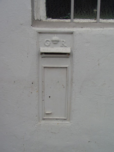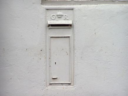 An attractive item of street furniture that represents an early surviving artefact of mass-produced cast-iron ware. The modest design of the box is enhanced by the royal cipher (identifying the reign of King George V 1910 - 1936) and the crown motif, which enliven the appearance of this otherwise functional object. Post boxes with the G.R. insignia are quite rare in Ireland, as they were erected only during a few years before independence. Many pre-independence post boxes were simply painted green and retained their royal insignia but are now becoming an increasingly rare sight and are worthy of retention as historical artifacts. It was cast by W.T. Allen and Company of London (1881 - 1955), who were responsible for many of the British era post boxes in North Leinster.