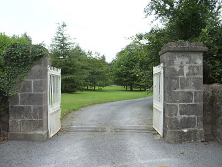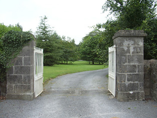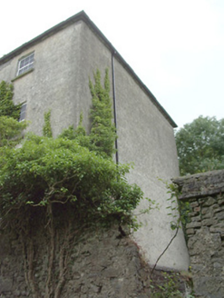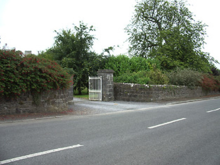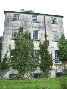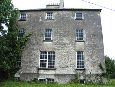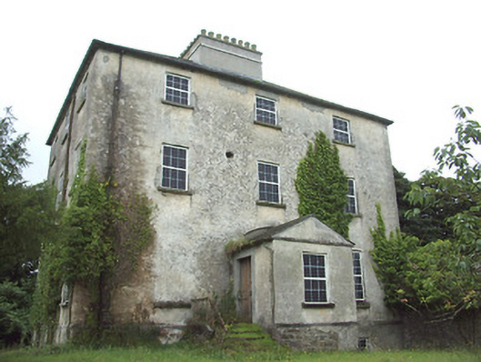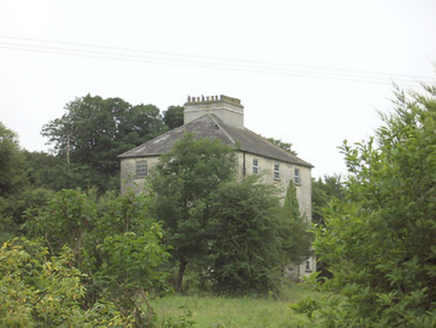 This imposing Church of Ireland rectory retains its early form and character despite being out of use since the 1960s. It is well-proportioned with diminishing window openings, while the regularity of its three-bay elevations creates an almost cubic effect. The massive L-shaped chimneystack is an interesting feature that gives this building a distinctive roofline. This is a much larger structure than is usually encountered with Church of Ireland rectories suggesting that it was (also) used for another purpose, perhaps as a bishop’s palace or for diocesan administration. Indeed, the nearby Church of Ireland church (St. Patrick’s 13312032) was, for a while, a cathedral church until the Dioceses of Ardagh and Kilmore were united in 1839. It cost £1383 to build, and Lewis (1837) records that this structure was built in 1823 ‘by a gift of £100 and a loan of £1200 from the Board of First Fruits’. The ruinous but good quality two-storey outbuilding to the rear, the boundary walls and the attractive entrance gates complete the setting and add to this notable composition. It forms an interesting pair of related structures with the associated Church of Ireland church (13312032) to the southeast.