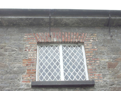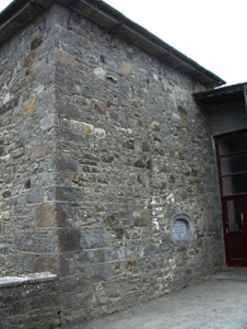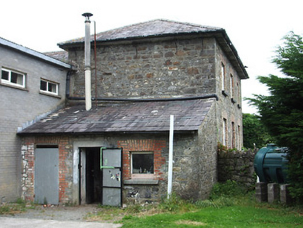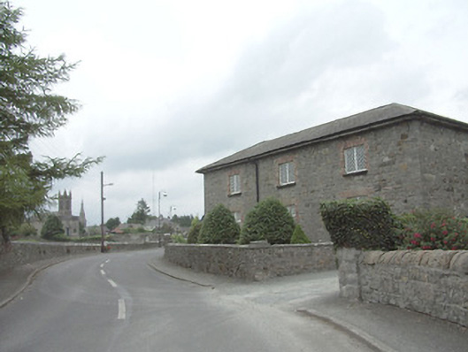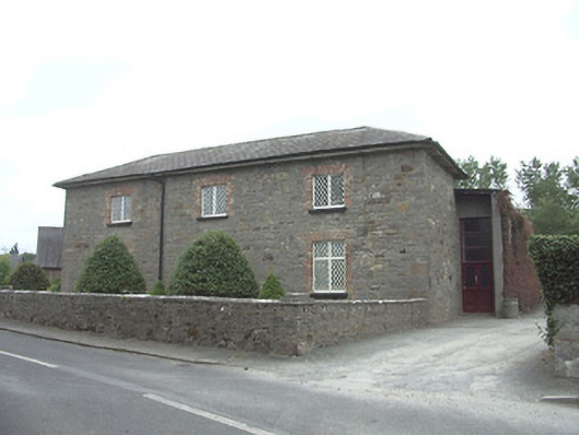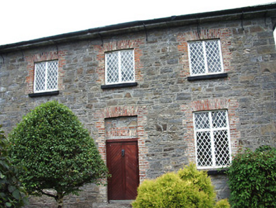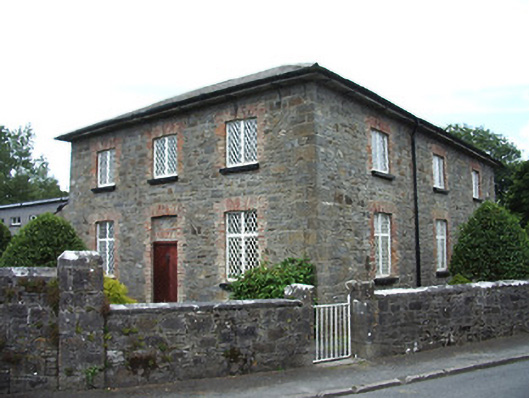Detached three-bay two-storey parochial school, built 1830, on an L-shaped plan. Extended, 1972, producing present composition to accommodate alternative use. Hipped slate roof on an L-shaped plan with ridge tiles, and cast-iron rainwater goods on wrought iron spandrels on slightly overhanging cut-limestone eaves with cast-iron downpipes. Repointed coursed rubble stone walls with tooled rough cut limestone flush quoins to corners. Square-headed window openings (ground floor) with drag edged dragged cut-limestone sills, and red brick block-and-start surrounds framing casement windows having pivot overlights. Square-headed window openings (first floor) with drag edged dragged cut-limestone sills, and red brick block-and-start surrounds framing casement windows. Set in landscaped grounds with repointed rubble stone boundary wall to perimeter having cut-limestone "saddleback" coping.