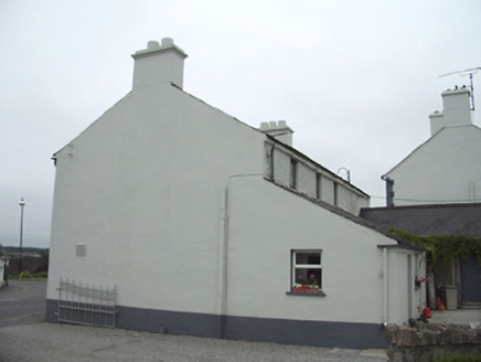Detached four-bay two-storey house, extant 1836, on a rectangular plan originally forming part of six-bay two-storey house with shopfront to ground floor. Pitched slate roof with ridge tiles, rendered chimney stacks having corbelled stepped stringcourses below capping supporting terracotta pots, and cast-iron rainwater goods on rendered cut-limestone eaves. Rendered, ruled and lined wall to front (north) elevation; roughcast walls (remainder). Shopfront to ground floor with pilasters on fluted pedestals on plinths supporting ogee cornice on frieze. Square-headed window openings with drag edged cut-limestone sills, and concealed dressings framing replacement uPVC casement windows replacing two-over-two timber sash windows. Square-headed window openings (east) with sills, and concealed dressings framing two-over-two timber sash windows having exposed sash boxes. Road fronted.