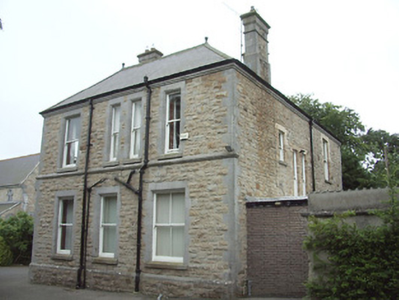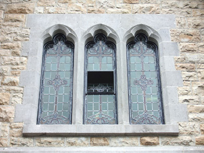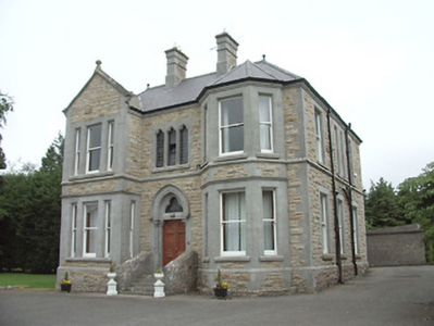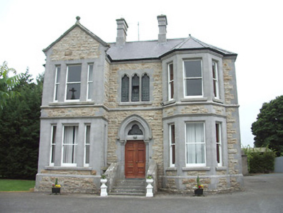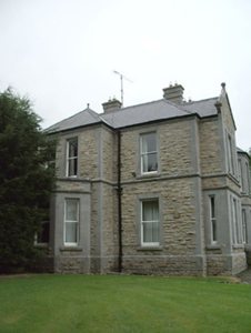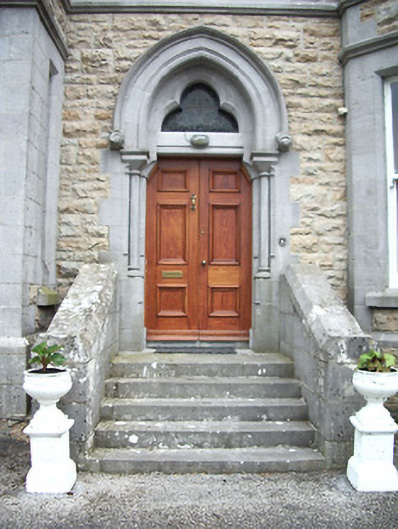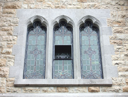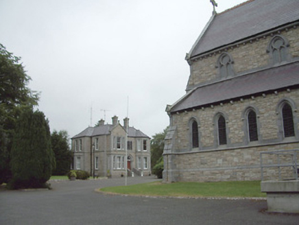 This substantial parochial house is associated with St. Brigid's Roman Catholic church (13312031) not only in its proximity, but also visually through the choice of building materials and finishes. The unusual trio of stained glass windows (probably indicating a chapel), and the carved doorcase continue the theme. High quality craftsmanship is apparent throughout, and the varied elevations create the appropriate liveliness. Its deliberate asymmetry is typical of many substantial late-Victorian and Edwardian structures. The juxtaposition between the rock-faced yellow sandstone construction and the gray limestone detailing creates an interesting tonal and textural variation to the facades. This parochial house was built under the direction of Monsignor James O’Farrell to designs by T.F. McNamara (1867 – 1947) of Hague and McNamara architects, the firm (and individuals) responsible for the design and execution of the associated church. It is unusually grand and large for a parochial house in a small rural village, suggesting, perhaps, that it was built to highlight Ardagh’s importance as the former seat of the Diocese of Ardagh. The good quality gates to the north (13312049) and the boundary wall complete the setting of this notable composition.