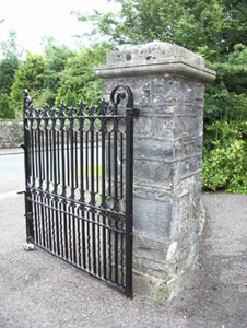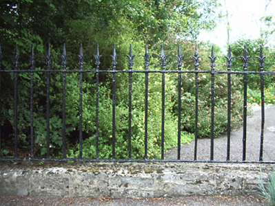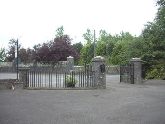 This elegant gateway retains much of its early form and character, despite being removed from another location and re-erected here in recent years. It was originally sited at Mount Jessop (13401807) to the northwest of Ardagh. Fine craftsmanship is evident in the design and detailing, particularly to the capstones and the wrought-iron gates and railings, and this gateway is one of a number of high quality entrance groups in the village of Ardagh. The sympathetic maintenance they receive as the entrance to a structure that significantly postdates it, aids their continued survival.