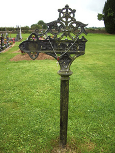 This interdenominational graveyard contains an interesting collection of cut stone grave markers, both recumbent and upstanding, some of artistic merit. The earliest grave marker is dated ‘1896’. Of particular interest is the attractive and unusual group of plot markers. Fine craftsmanship and attention to detail are apparent in their elaborate late-Victorian design. Each of the plot markers bears a separate title, seven of which (Mel, Brigid, Lupita, Patrick, Melchus, Kyra etc) are the names of saints associated with the Ardagh area. The remaining plot marker is for the Church of Ireland plot. Objects such as these are particularly vulnerable to changing fashion, and their retention is both noteworthy and significant. The pivoting wrought-iron fan-shaped gate to the west end, adjoining the church grounds, is an unusual feature that adds further interest to this site. It forms a group of related structures along with the gates to the north (13312007) and the adjacent Roman Catholic church (13312031).