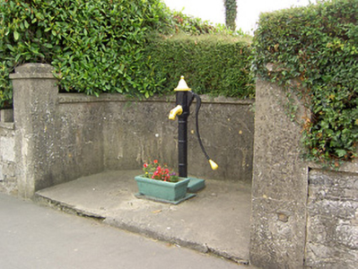 This elegant water pump exhibits attractive, well executed detailing that enlivens the form of this utilitarian object. It was manufactured by the Shannon Foundry in Limerick. Water pumps such as this once played an important social and functional role providing a communal water source. The appearance of this functional object is enlivened in its detailing such as the banded base and fluted neck and decorative cap. Prior to the erection of this water pump, the only public source of water on this side of the village was a spring down a lane to the northeast (local information). This pump is an important reminder of rural Ireland before the widespread provision of a domestic water supply and as such is an interesting and attractive feature in the streetscape.