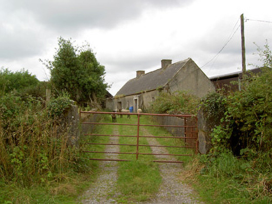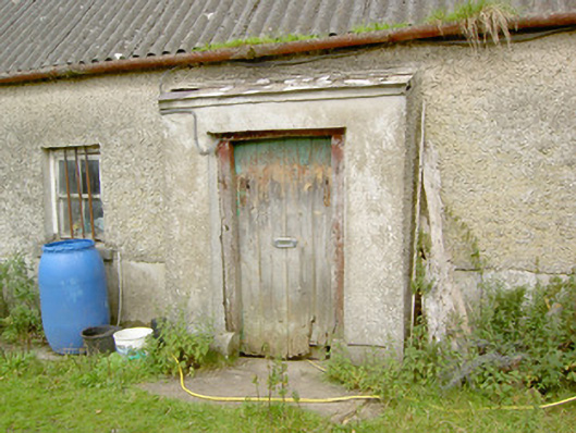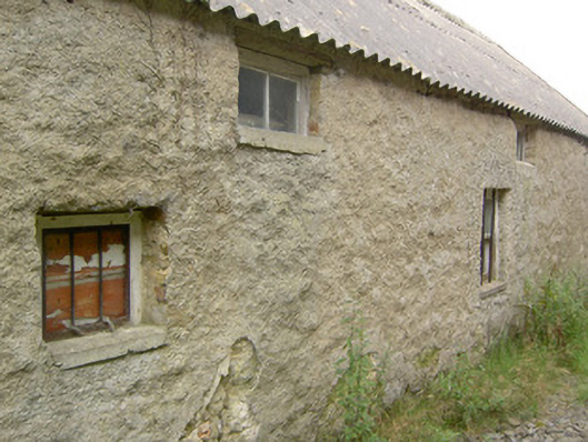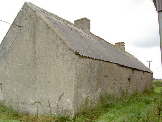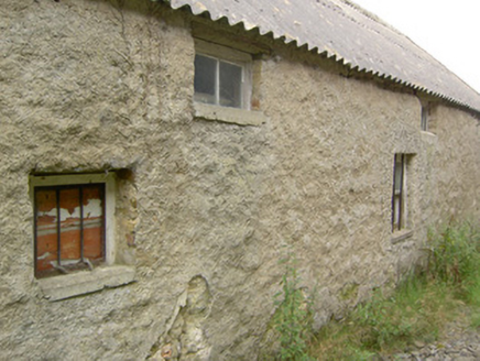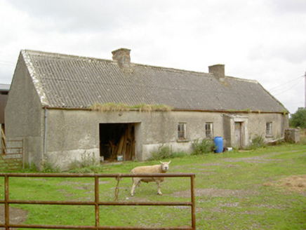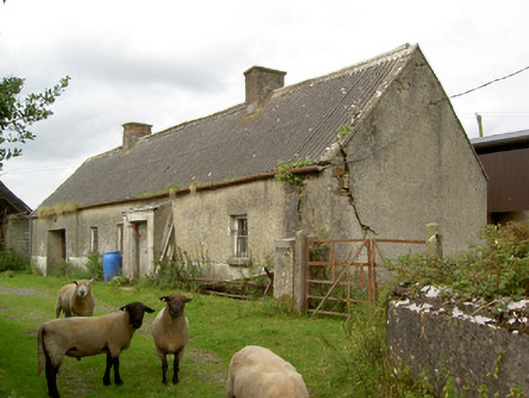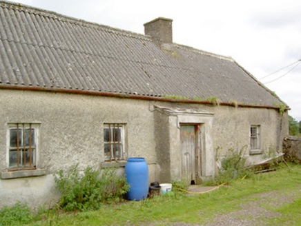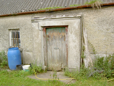 Although now disused, this single-storey vernacular house retains its early form. Its original character has been preserved in the retention of features and materials such as asymmetrically placed timber sliding sash windows, tooled limestone sills, a timber battened door and a traditional windbreak porch to the entrance. The position of one of the chimneystacks, in line with the doorway, suggests that it has the lobby-entry plan that is characteristic of the vernacular architecture of the midlands of the Ireland. It is arranged at a right angle to the road, which is also a typical characteristic of the extended vernacular tradition in Ireland. The rear elevation is particularly interesting with a variety of window openings at both ground and attic level, perhaps suggesting that this building is of considerable antiquity. The steep pitch of the roof suggests that it was formerly thatched. The outbuilding/shed to the southwest end, under the same roofline as the main building is another feature of the Irish vernacular tradition. The simple rubble stone outbuildings complete the setting and adds to this interesting example of vernacular architecture.