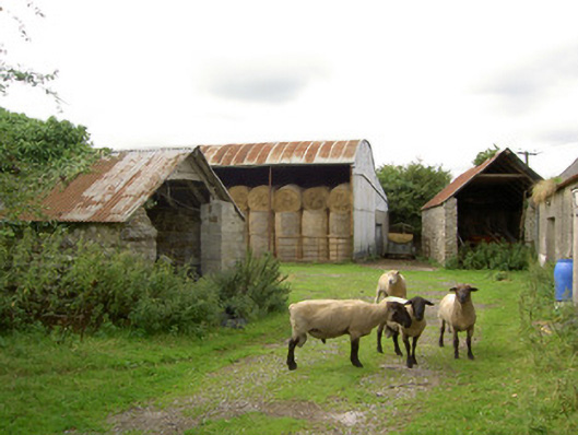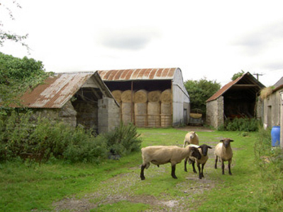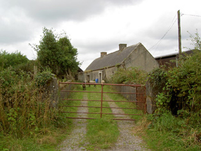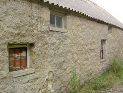 Detached four-bay single-storey with attic level vernacular house, built c. 1800, having a windbreak porch the main elevation (southeast) and attached shed under same roof to southwest end. Now disused. Pitched corrugated-asbestos roof with rendered brick chimneystacks, cast-iron rainwater goods and raised rendered verges to the gable ends. Slate roof to windbreak. Roughcast rendered random rubble limestone walls over smooth rendered plinth course. Square-headed window openings to main elevation (southeast) with cut tooled limestone sills and two-over-two pane timber sliding sash windows. Irregularly spaced square-headed window openings to the rear elevation (northwest) with variety of timber framed window fittings. Square-headed door opening to windbreak porch with timber battened door. Single-storey outbuildings to the southwest of site having pitched slate and corrugated-metal roofs, of random rubble limestone construction. Recessed from road having rendered walls and piers at entrance to site. Located to the northeast of Barry.