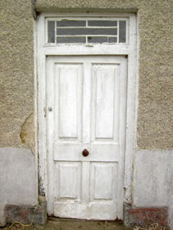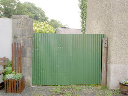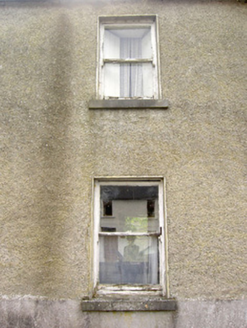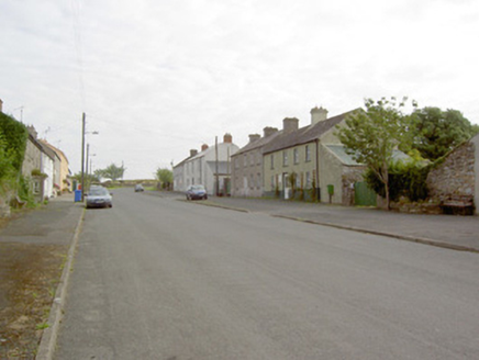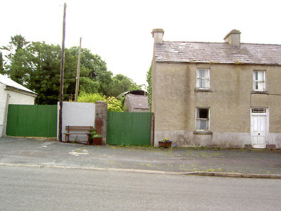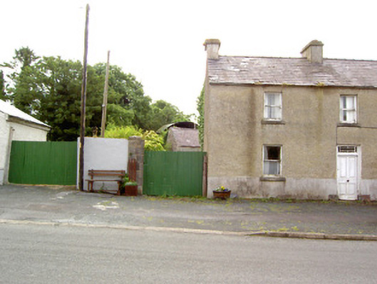 Semi-detached four-bay two-storey house, built c. 1830, now disused. Pitched natural slate roof with rendered chimneystacks and cast-iron rainwater goods. Pebbledashed walls over smooth rendered plinth course. Square-headed window openings with tooled cut limestone sills and diminishing one-over-one timber sliding sash windows. Square-headed door opening with timber panelled door and leaded glass overlight. Cut stone blocks to base of doorway. Timber battened shutters visible to window interiors. Single-storey outbuilding to rear having pitched natural slate roof and roughcast rendered walls. Ashlar limestone pier to northeast of site. Set directly on the main street in the village of Barry.