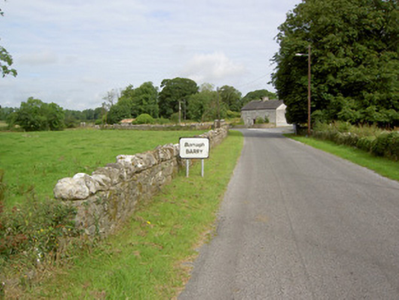 This slightly unusual house, of squat almost vernacular appearance, occupies a prominent site to the southwest end of the main street, Barry. Its prominent position hints at an additional former function, perhaps as a police station or RIC barracks. It retains much of its early form, character and fabric, including timber sash windows and cut limestone sills. The position of the chimneystack and the proportions suggest that it may have been formerly thatched with a new roof structure added later, perhaps c. 1930. The canted bay window on the northwest elevation is an interesting and unusual feature. The simple outbuilding, rubble stone boundary walls and the wrought-iron gate complete the setting of this appealing composition. It is one of the few buildings in Barry that retains its early aspect and is an integral element of the built heritage of the local area.