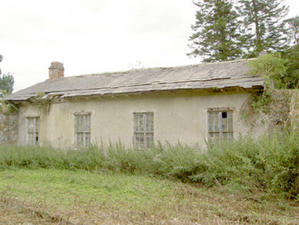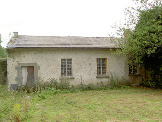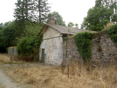 Detached four-bay single-storey estate workers house/possible school, built c. 1820, now disused. Pitched slate roof with overhanging eaves and brick chimneystacks. Roughcast rendered walls. Square-headed window openings with tooled cut limestone sills and paired six-over-six timber sliding sash windows. Square-headed door opening with tooled cut limestone block-and-start surround and timber battened door. Set in walled garden complex (13314003) within Doory Hall demesne, the northeast elevation of the building forming part of the garden wall. Located to the northeast of the main house (13314005) and to the northeast of Barry.