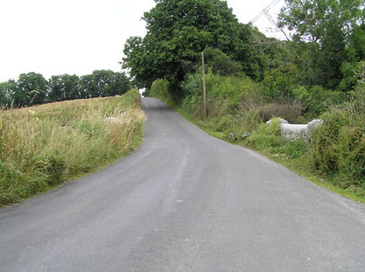 Single-arch road bridge, built c. 1860, over unnamed river/stream linking Enaghan Lough (south) and Guinikin Lough (northwest). Constructed of coursed rock-faced limestone with rounded dressed limestone coping over parapet walls. Segmental-headed arch with rock-faced limestone voussoirs. Rock-faced string course at road/deck level. Terminating piers (on square-plan) having rock-faced coping over. Located to the extreme north of County Longford, on border with County Cavan.